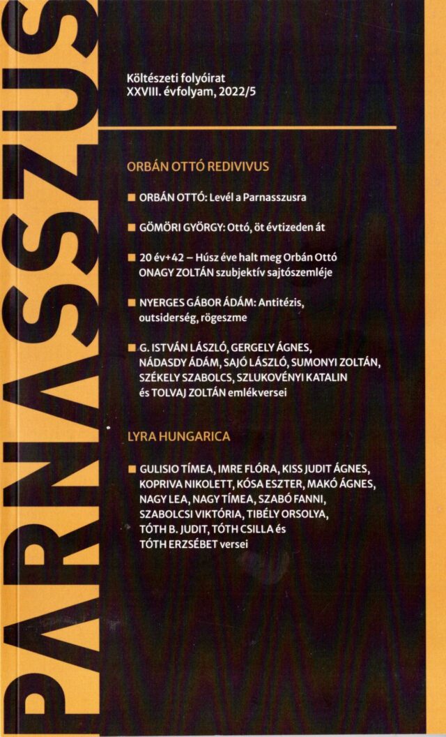 Megjelent a Parnasszus 5. száma és nagysikerű esten mutattuk be a Nyitott Műhelyben november 8-án. Benne: Orbán Ottó- Revidius Orbán Ottó:Levél a Parnasszusra Gömöri Görgy: Ottó, öt évtizeden át 20 év +42 – Húsz éve halt meg Orbán Ottó Onagy Zoltán szubjektív sajtószemléje Nyerges Gábor Ádám: Antitézis, outsiderség, rögeszme Emlékversek Lyra Hungarica Rendelhető az alábbi…